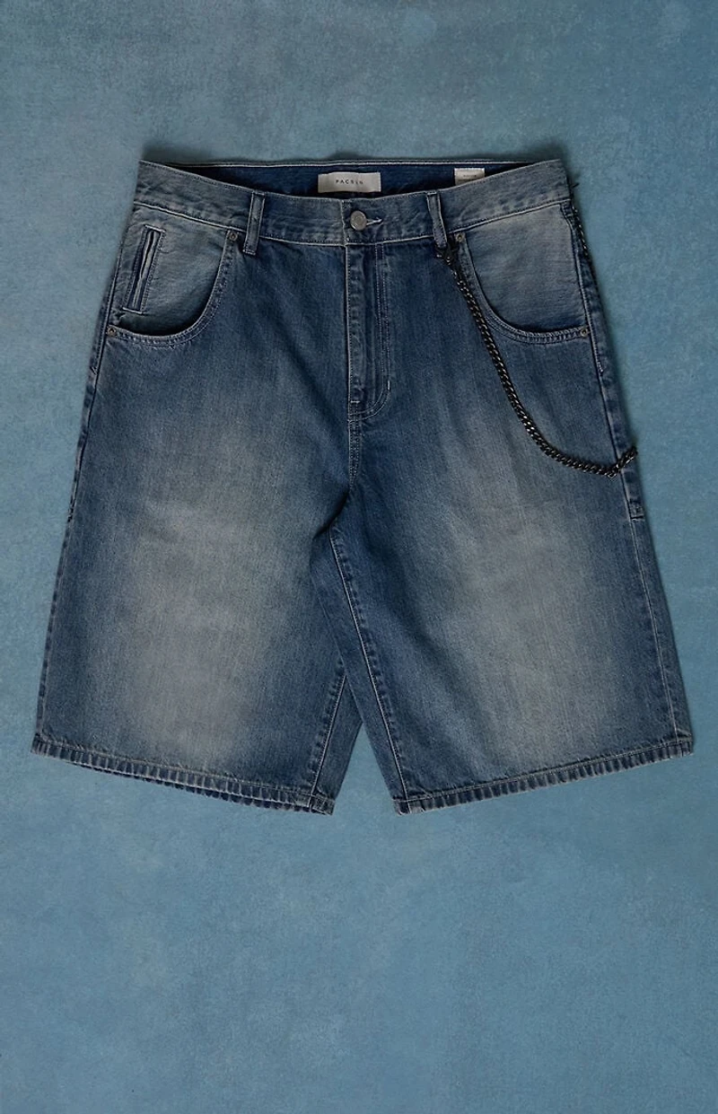 Pacsun Austin Extreme Baggy Denim Shorts Chain Medium Blue