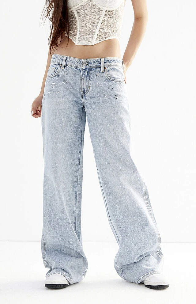 PacSun Casey Light Indigo Rhinestone Low Rise Baggy Jeans