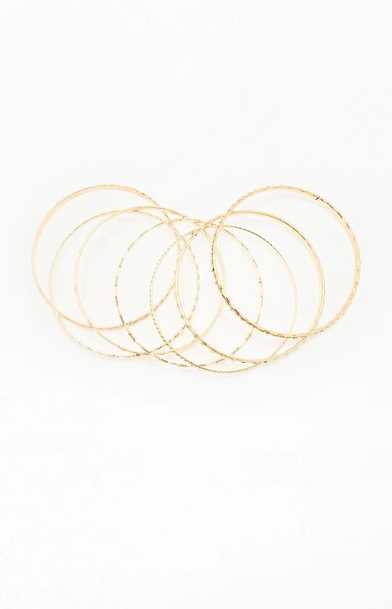 The Greta Metal Bangle Set from Pacsun adds the perfect touch of shine to your everyday accessory lineup. This stacked set includes 7 gold-finish bangles featuring a mix of rhinestone accents and etched designs for an effortlessly layered look you can wear all together or mix and match.