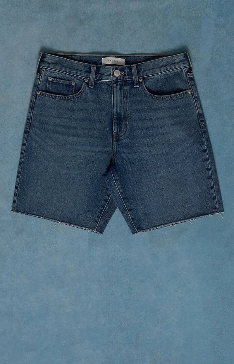 The Harrison Cutoff Baggy Jean Shorts Medium Blue offers a relaxed baggy fit and a cutoff leg design, perfect for a laid-back look. Crafted from rigid denim in a medium blue wash, these shorts feature a classic 5-pocket body, making them an ideal staple for casual wear with an edge.
