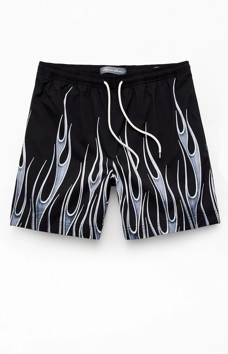 Bring the heat to the beach with the Iron 6.5" Volley Swim Trunks from Pacsun. These relaxed-fit trunks come with a full mesh lining, drawstring waistband, side hand pockets, a single back pocket, and bold iron flames graphics for a standout summer look.