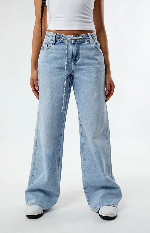 PacSun Light Indigo Grommet Low Rise Baggy Jeans