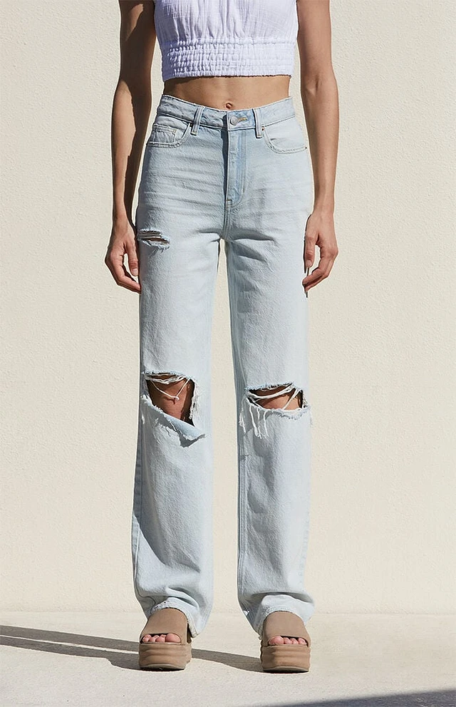 Pacsun Jordyn Low Rise Straight Leg Jeans Ripped Light Indigo