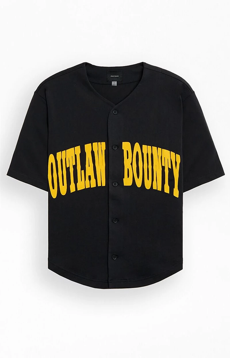 Stay in style with the Outlaw Bounty Baseball Jersey from Pacsun. This jersey features short sleeves, a v-neckline, button front closures, front and back appliques, and a relaxed fit for ultimate comfort and style.