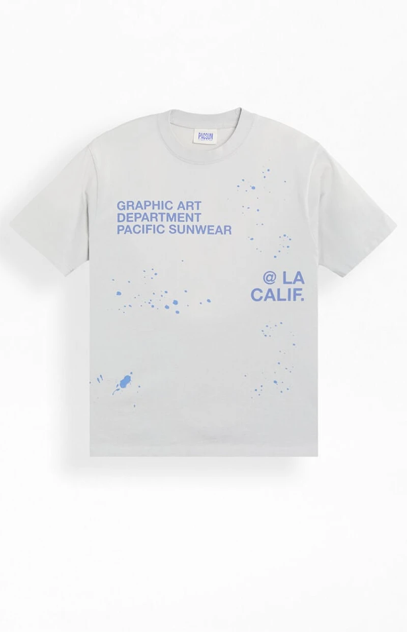 The Pacsun Terrain T-Shirt brings bold, artistic style to your everyday rotation. Featuring short sleeves and a crew neckline, it’s finished with paint splatter graphics, a Graphic Art Dept. Pacific Sunwear logo on the front, and New York and Los Angeles graphics on the back.
