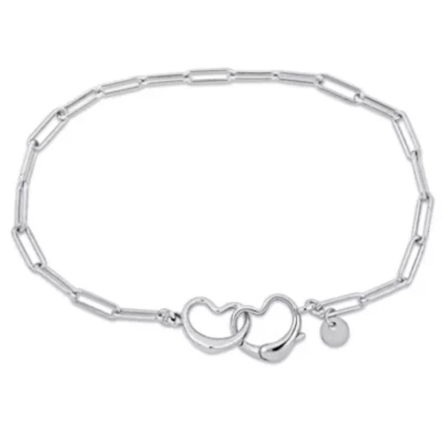 Paper Clip Link Bracelet with Double Heart Clasp in Sterling Silver - 7.5"