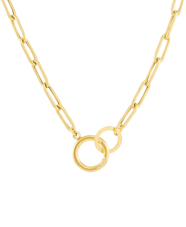 Paperclip Link 16" Chain Necklace with Interlocking Circle clasp in 18k Gold-Plated Sterling Silver