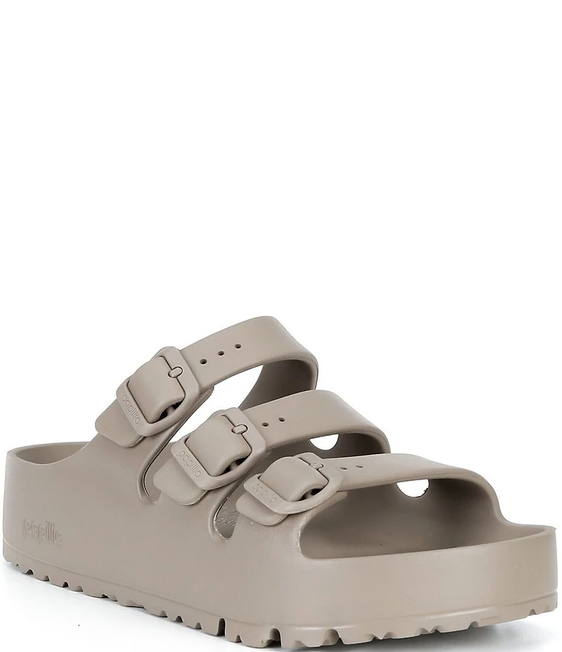 From Papillio by Birkenstock, the Women's Florida Platform Flex EVA Slide Sandals feature: EVA upper Slip on design Triple banded design with adjustable buckle closures Deep heel cup for all day comfort Anatomically shaped BIRKENSTOCK footbed made from EVA EVA outsole Approx. 0.98" platform height Imported. Sizing Notes: Birkenstock footwear is made in European whole sizes. The style selected is a Birkenstock narrow footbed that will fit most medium feet