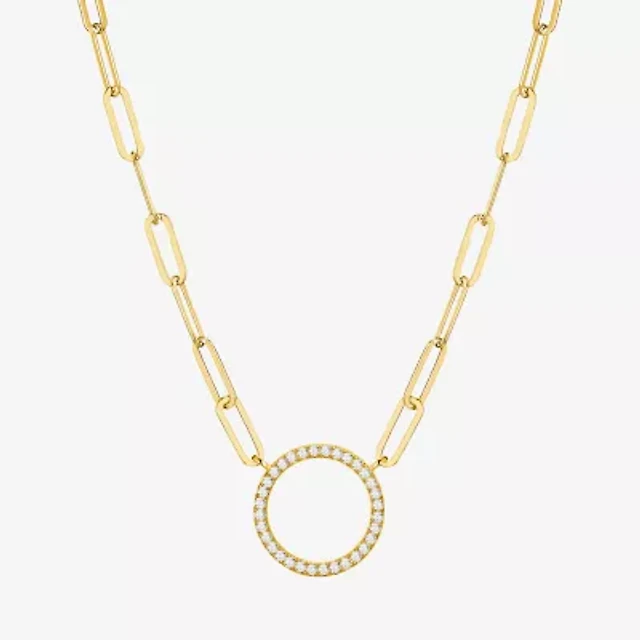 Paris 1901 By Charles Garnier Womens White Cubic Zirconia 18K Gold Over Silver Circle Paperclip 18 Inch Pendant Necklace