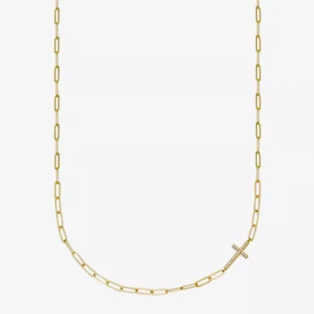 Paris 1901 By Charles Garnier Womens White Cubic Zirconia 18K Gold Over Silver Cross 17 Inch Pendant Necklace