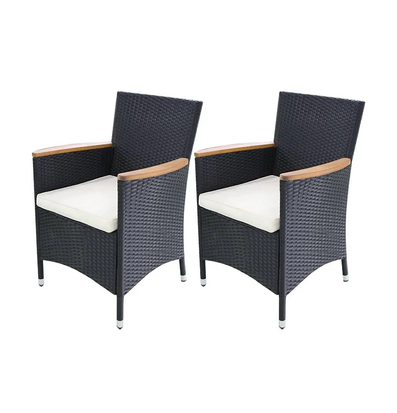 Patio Chairs 2 pcs with Cushions Poly Rattan Black