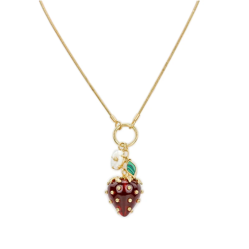 Understated and undeniably charming, this adorable strawberry pendant necklace brings spring warmth to any occasion.
