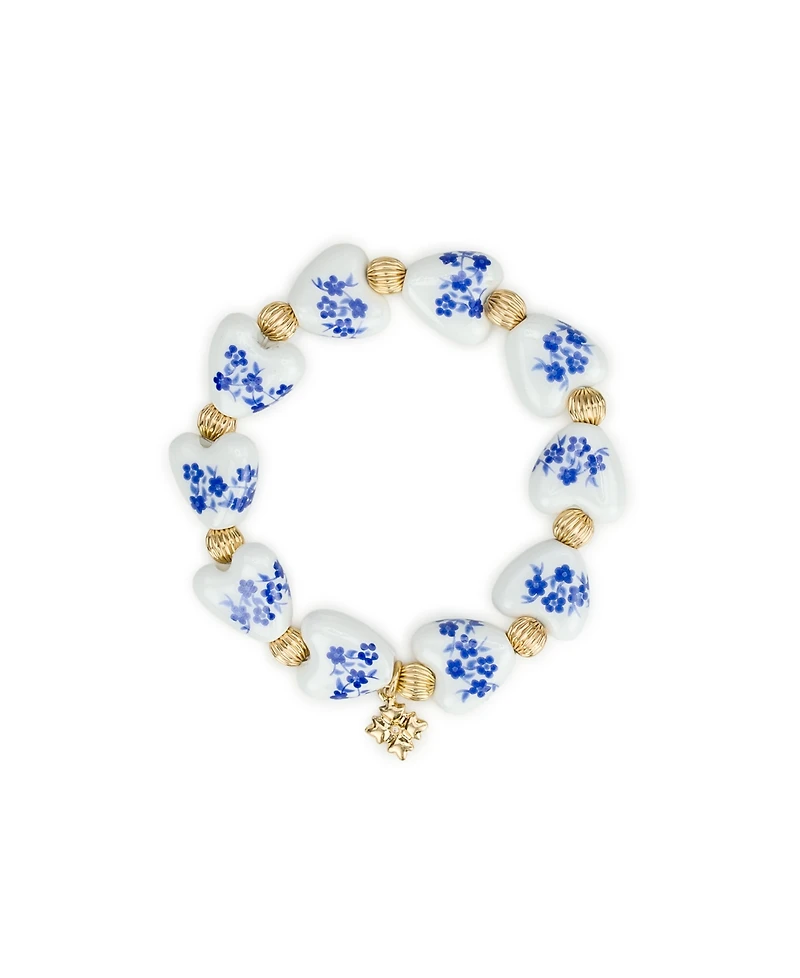 Featuring our lovely blue ceramic pattern, this precious heart stretch bracelet can be dressed up or down to fit any occasion. With subtle, sophisticated color and sleek construction, this bracelet is the perfect way to add a little love to your day.