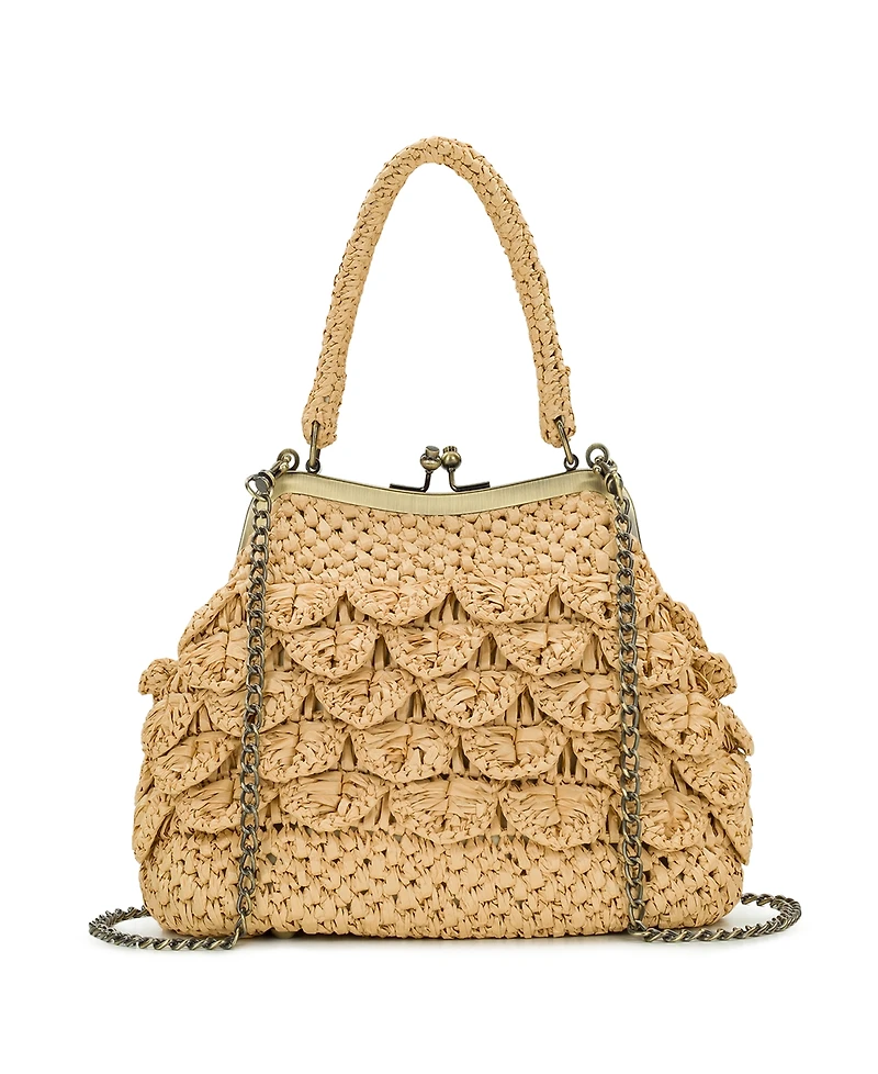 Patricia Nash Laureana Scalloped Raffia Small Frame Satchel Bag