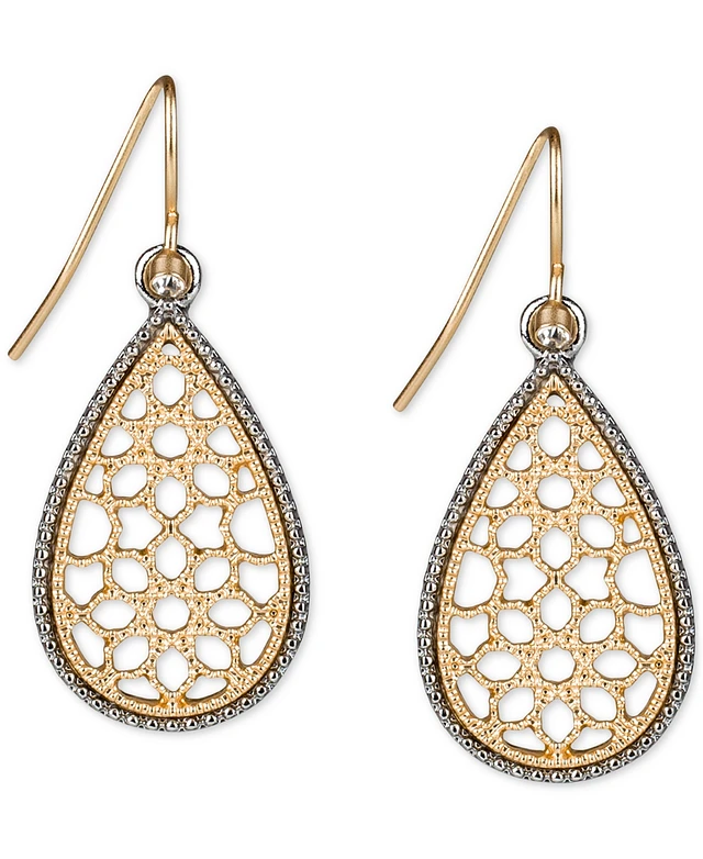 Patricia Nash Two-Tone Pave Lace-Look Tear-Shape Drop Earrings