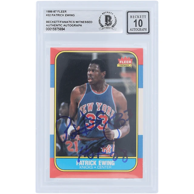 Patrick Ewing New York Knicks Autographed 1986 Fleer Series 1 #32 Beckett Fanatics Witnessed Authenticated 10 Rookie Card