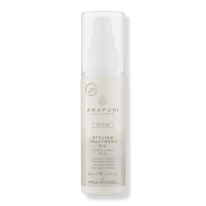 STYLING TREATMENT OIL 3.4OZ. Benefits: Dry-touch, leave-in formula. Adds hydration with awapuhi extract. Seals, smoothes + imparts shine. Ideal for all hair types. Great for prepping any hairstyle. Features: Made from at least 25% PCR (post-consumer recycled) packaging (percentages may vary/excludes closures). Tropical ginger-green tea mango scent. Color safe. Paraben free. Gluten free. :