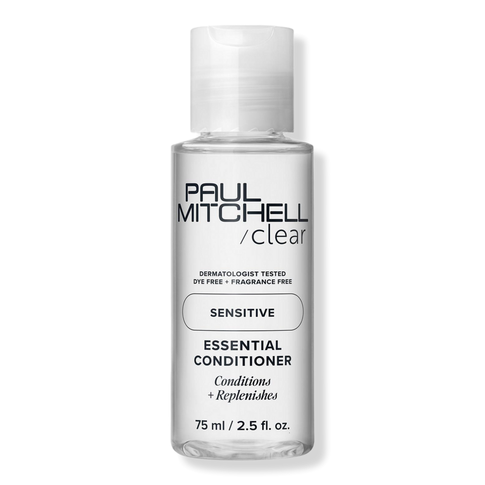 CLEAR ESSENTIAL CONDITIONER 10.14OZ. Benefits: Lightweight daily conditioner. Replenishes strands without irritating sensitive scalp or skin. Leaves hair feeling light, soft + manageable. Purposefully formulated with just 9 essential ingredients. Ideal for all hair types; perfect for people with sensitivities. Features: Dermatologist + pediatrician tested. Color safe. Packaging made with post-consumer recycled (PCR) materials + low-profile caps as part of Paul Mitchell's long-standing commitment to the environment. (Bottles + jars will be 50% PCR + tubes will be 25% PCR. Retail sizes only. Excludes pumps + select caps, which are made from virgin materials.). Formulated Without: Dyes. Fragrance. Fillers. Parabens. Gluten.