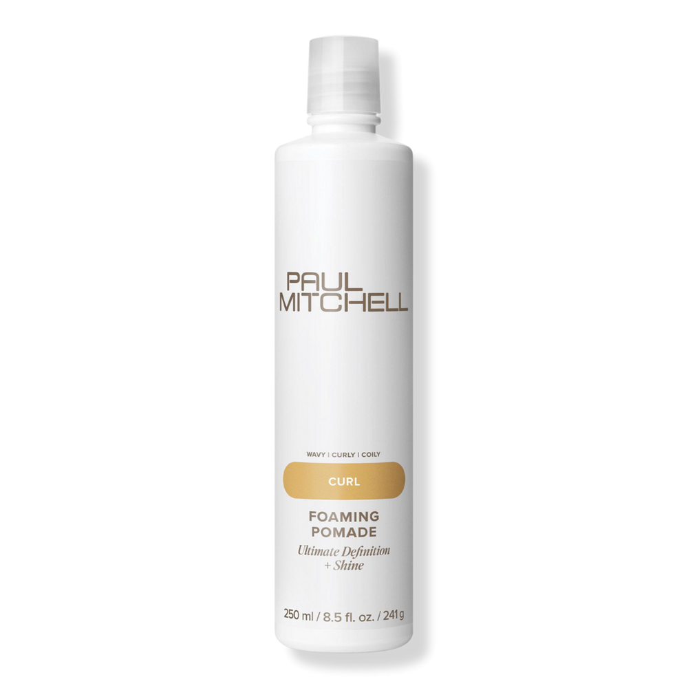 FOAMING POMADE 8.5OZ. Benefits: Transforms from a milky lotion into a light foam. Shapes + defines curls + waves. Provides light hold + shine. Ideal for wavy, curly + coily hair. Use to create a variety of hairstyles from diffused curls to a sleek blowout. Features: Refreshing cucumber melon scent with soft floral notes. New packaging made with post-consumer recycled (PCR) materials + low-profile caps as part of Paul Mitchell's long-standing commitment to the environment. (Bottles + jars will be 50% PCR + tubes will be 25% PCR. Retail sizes only. Excludes pumps + select caps, which are made from virgin materials.). Color safe. Paraben free. Made without gluten. :