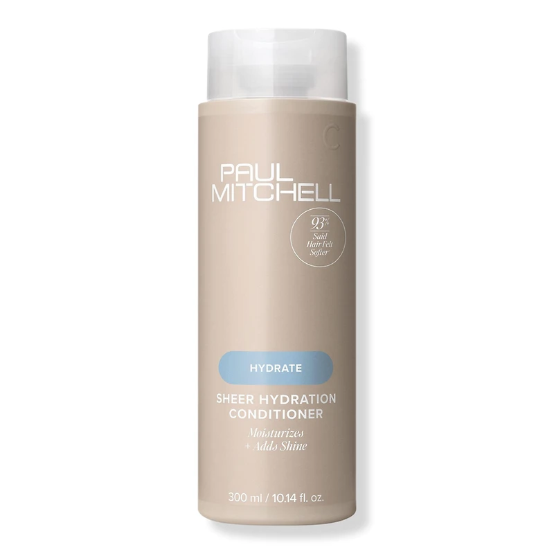 SHEER HYDRATION CONDITIONER NEW 10.14OZ. Benefits: Formerly Instant Moisture Conditioner. Nourishes, hydrates + adds shine. Leaves strands looking + feeling soft + healthy. Ideal for dry hair. 93% said hair looked softer + 91% said hair looked healthier (Based on a consumer study of 49 people when using Sheer Hydration Shampoo & Conditioner.). Features: Fresh energetic notes of lemon and orange blended with subtle lavender and aromatic mint. New packaging made with post-consumer recycled (PCR) materials + low-profile caps as part of Paul Mitchell's long-standing commitment to the environment. (Bottles + jars will be 50% PCR + tubes will be 25% PCR. Retail sizes only. Excludes pumps + select caps, which are made from virgin materials.). Color safe. Paraben free. Made without gluten. Key Ingredients: Infused with Irish sea moss + spirulina to hydrate + revive dry hair while boosting shine.