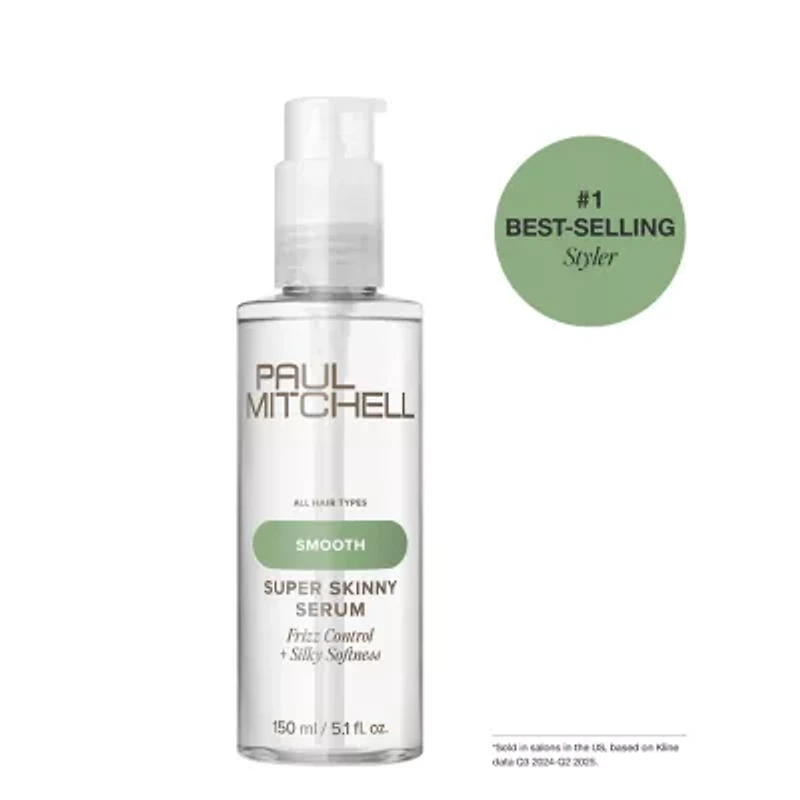 Style your hair with Paul Mitchell Super Skinny hair serum, designed to give silky softness and tame frizzy hair with its vegan formula. It controls frizz, enhances softness, and is suitable for all hair types.