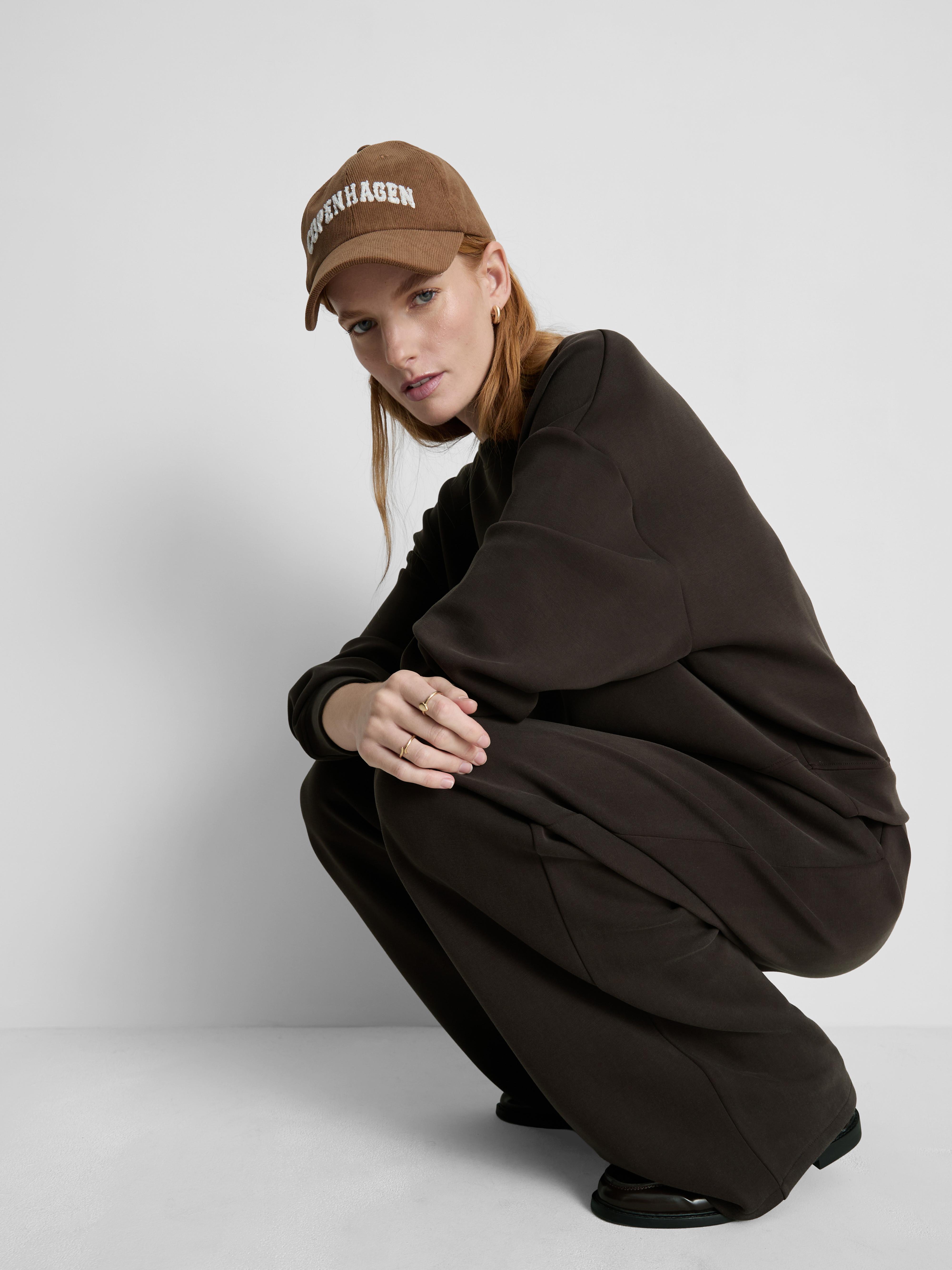 Wide leg sweatpants in dark brown with drawstring waist, from the Paula Echevarría collection