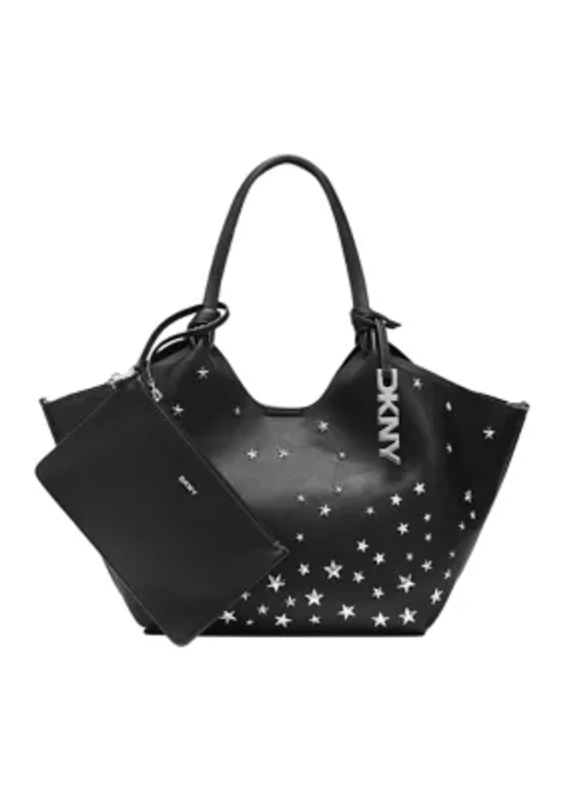 Carry the essentials in style with this chic DKNY tote, which provides plenty of room and multiple pockets to keep things organized. It's durable and comfortable with a sophisticated design, making it ideal for work, travel or everyday outings. 9" L handle Shoulder strap 1 slip pocket 1 slip pocket, 1 zip Imported Product Specifications 18.75" L x 12" H x 4.6" D Material & Care Polyurethane Spot clean only