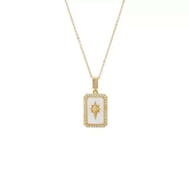 Cubic Zirconia Pavé Dog Tag Necklace Charm in 10K Gold