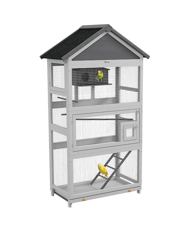 PawHut Wooden Bird Aviary with Slide-Out Tray, Birdhouse, Ladder, Perches
