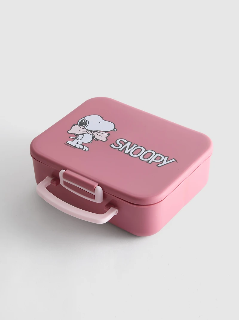 A bento-style lunchbox with Snoopy design