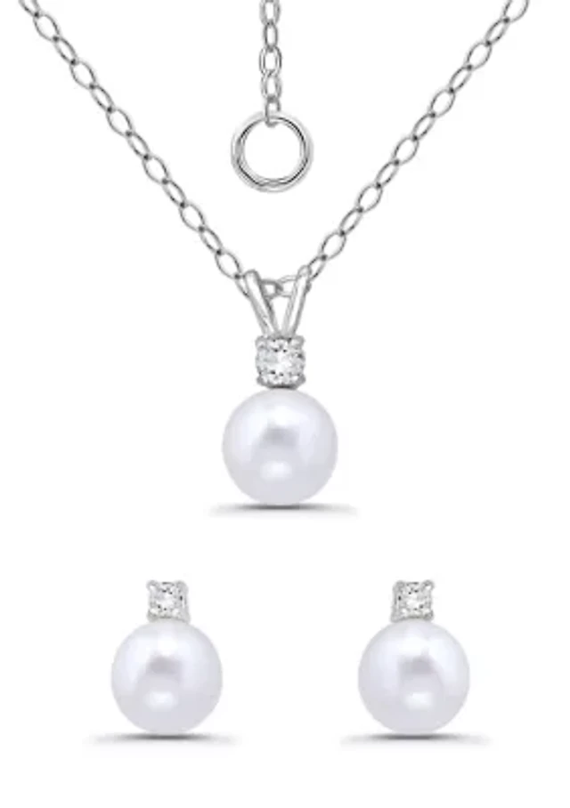 Freshwater Pearl Sterling Silver Necklace and Pearl Stud Earring Set