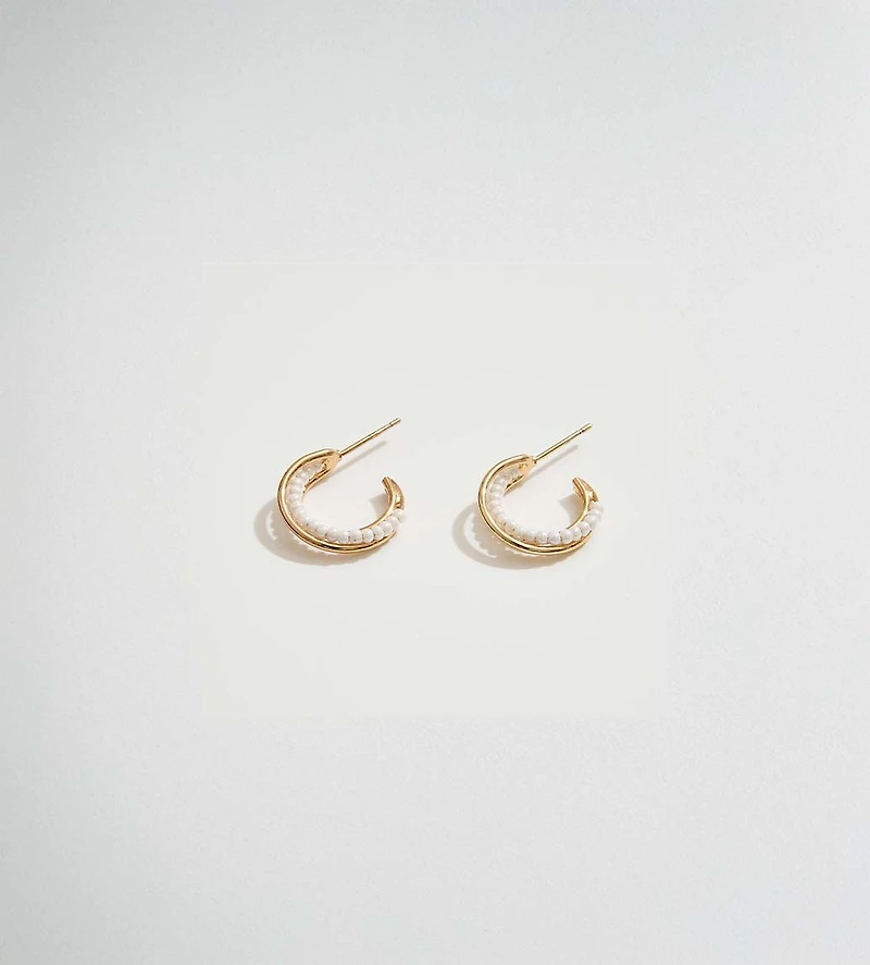 Classic meets modern in these gold hoops, finished with a delicate row of faux pearls. Their understated elegance makes them ideal for dressing up your everyday styles or adding polish to special occasions.