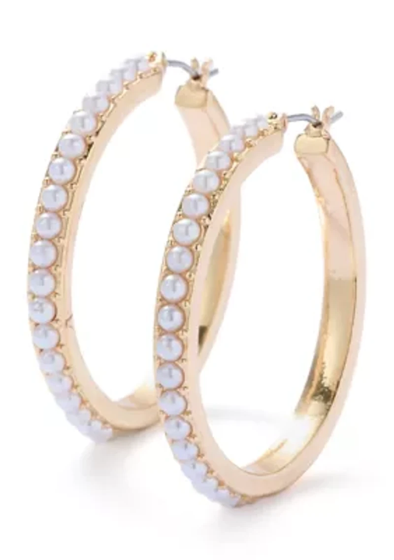 Pearl Pavé Thin Hoop Earrings in Franklin, TN