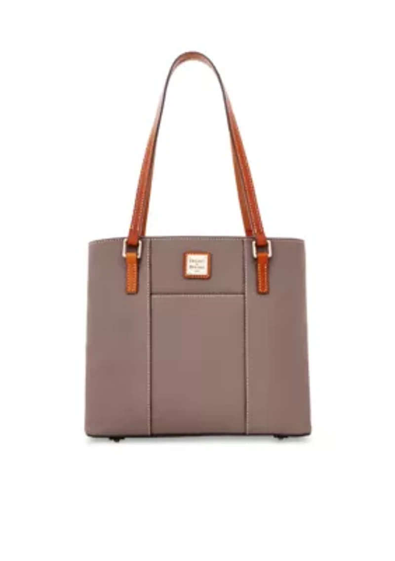 The Pebble Grain Collection by Dooney & Bourke is renowned for the rich texture and exceptional durability of its leather. Designed to be your go-to bag, this tote presents you with a classic and stylish silhouette but is also functional enough to store everything in your busy on-the-go life. Zip closure Double top handles with 11.5" drop Polished finish Exterior: front and back slip pockets, feet Interior: 2 front slip pockets, 1 back zip pocket, 1 back slip pocket, key clip, cell phone pocket, lined Imported Product Specifications 11.75" L x 3.5" W x 10.5" H Material & Care Leather trim Leather Clean with a soft cloth