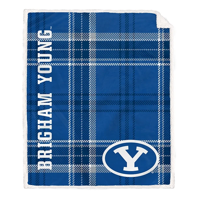Pegasus BYU Cougars 50" x 60" Playmaker Plaid Ultra Cozy Sherpa Throw