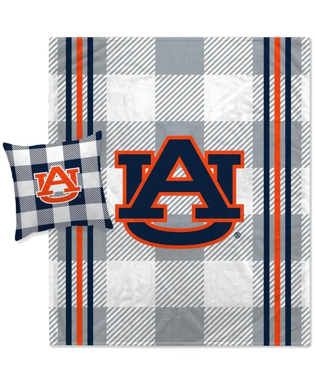 Pegasus Home Fashions Auburn Tigers Gray Plaid Stripes Blanket and Pillow Combo Set