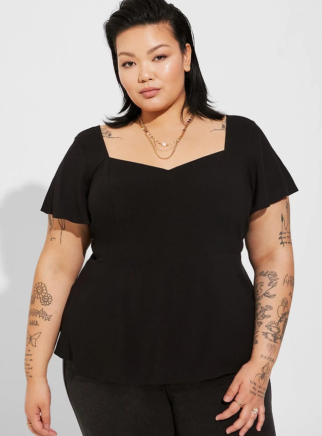 Peplum Challis Sweetheart Flutter Sleeve Top