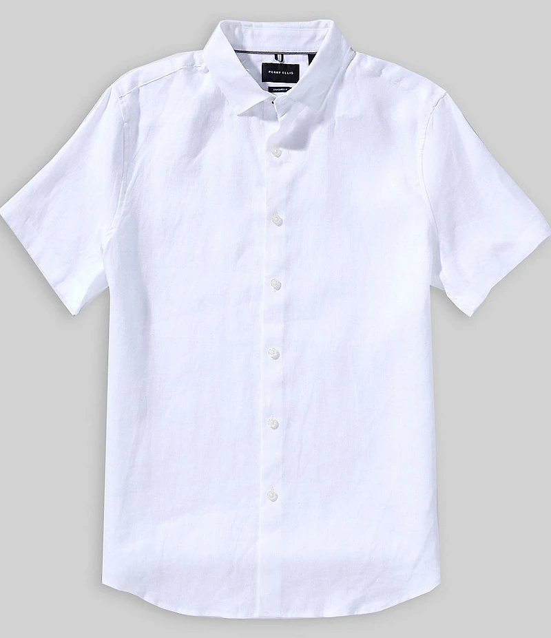 From Perry Ellis Big & Tall, this shirt features: Solid tone Spread collar Short sleeves Button-front closure Linen Machine wash/tumble dry Imported.