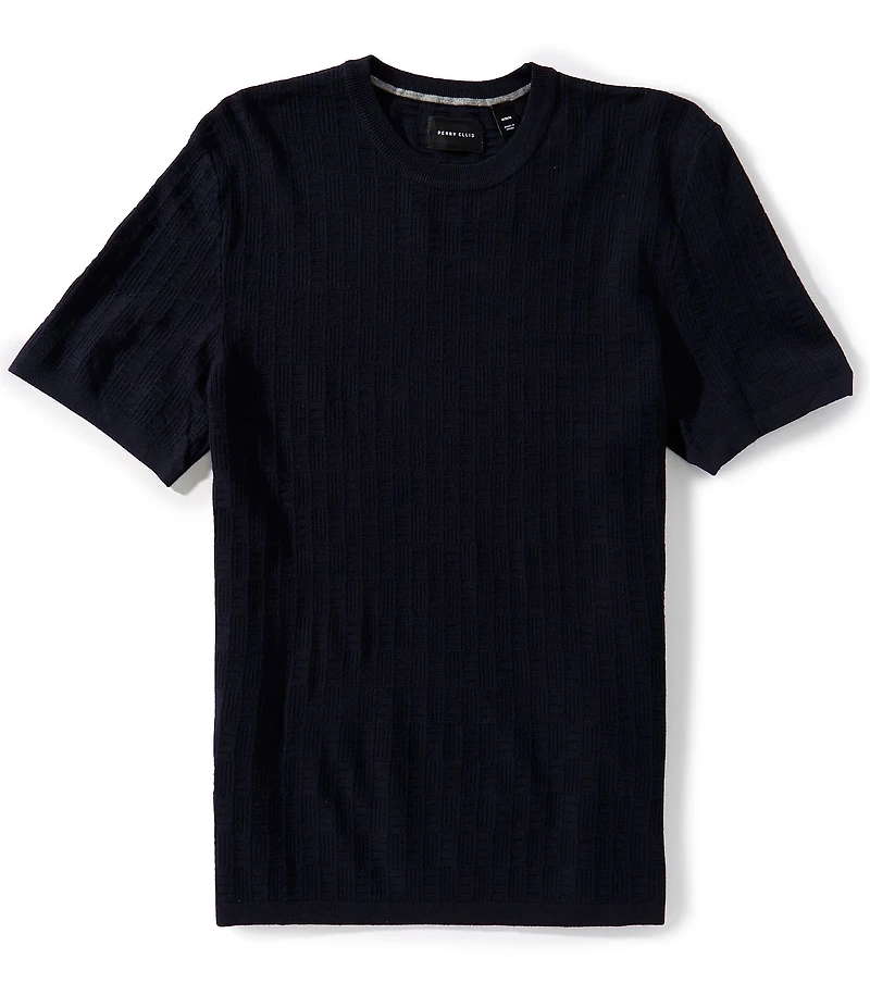 From Perry Ellis, this polo shirt features: Textured feel Crew neckline Short sleeves Pullover construction Viscose/polyester Machine wash Imported.