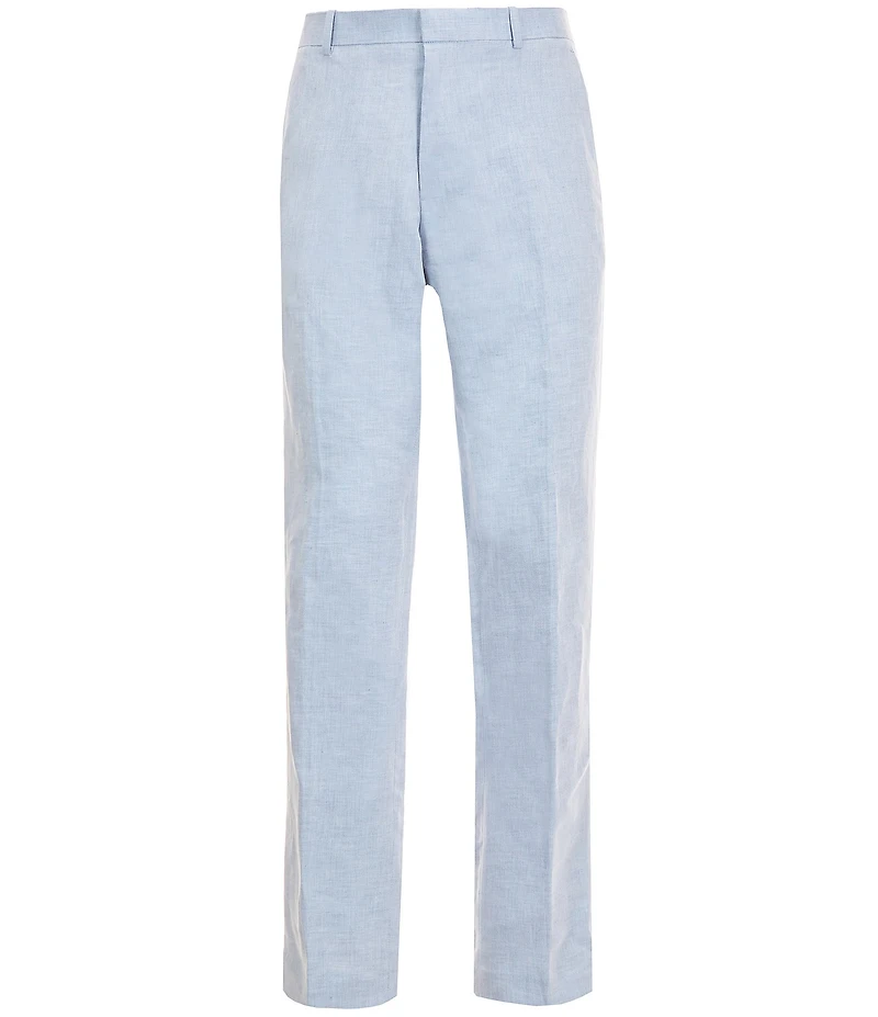 From Perry Ellis, these Flat-Front Linen Pants feature: Solid tone Slim fit Mid-rise Front button/zip fly Dual front and back pockets Stretch Breathable Linen/cotton Machine wash/tumble dry Imported