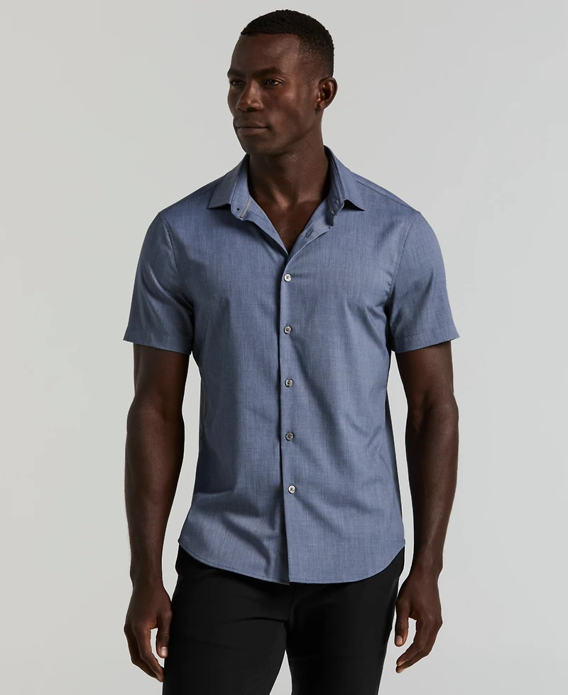 Engineered with moisture-wicking and stretch, this short-sleeve shirt from Perry Ellis keeps you cool and dry throughout your day. The slim fit design transitions seamlessly from office settings to evening outings, keeping you comfortable and polished.