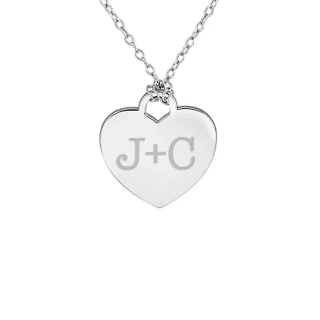 Personalized Sterling Silver Round Disc Heart Pendant Necklace
