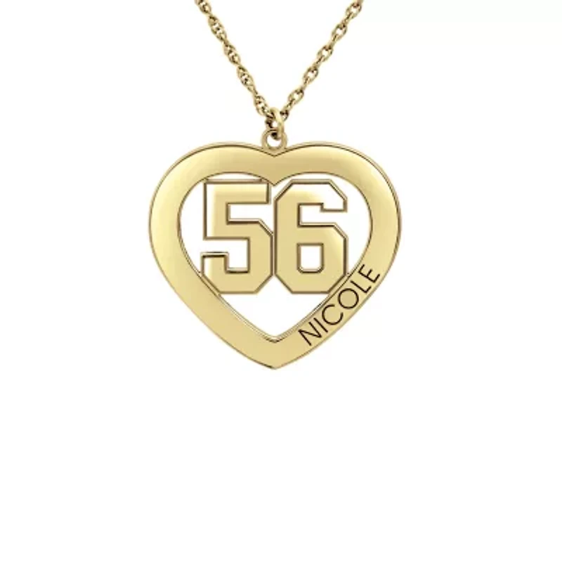 Personalized Womens 24K Gold Over Silver Name and Player Number Heart Pendant Necklace