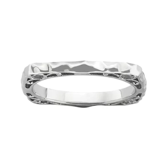 Personalized Womens Simulated Sterling Silver Square Stackable Ring