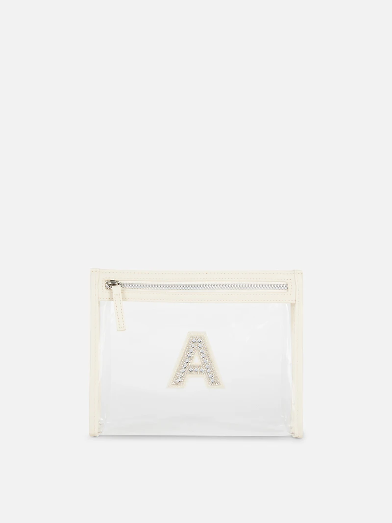 Keep everything in sight with this perspex pouch - with a personalized initial just for you!