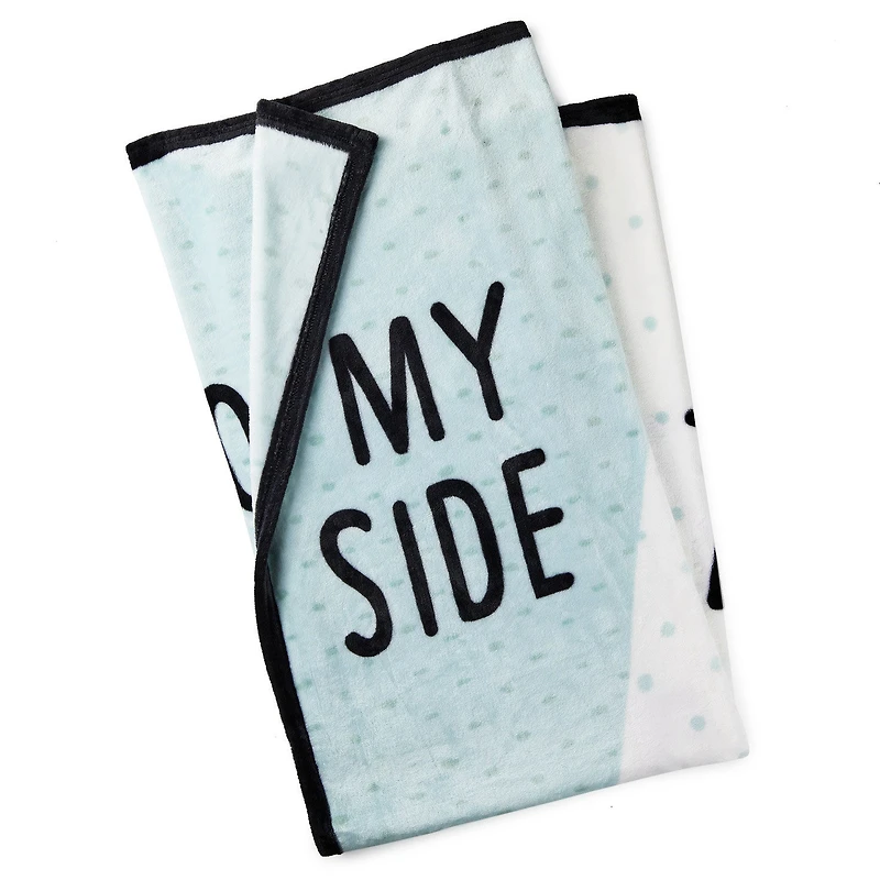 Give your fur baby the VIP treatment with this charming and cozy plush blanket designed with pets in mind. Featuring an oversized “pet zone” smack dab in the middle between "my side" and "your side," the blue-and-white blanket maps out the ultimate snuggle spot for your four-legged family member. Whether they’re lounging and looking longingly at your popcorn bowl, chasing squirrels in their dreams, or just claiming their territory (your lap), this blanket makes it clear who's a good boy. Perfect for pet-loving households, it adds warmth, comfort, and a whole lot of personality to your home — just like they do.