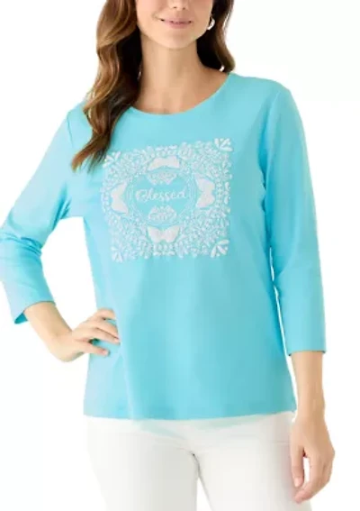 Petite 3/4 Sleeve Crew Neck Graphic Shirt