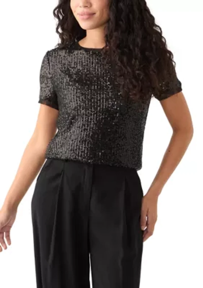 Petite Banded Linear Sequin Triple Mesh T-Shirt in Franklin, TN