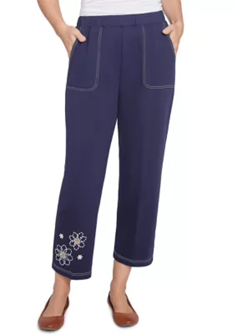 Petite Block Island Embroidered Daisies Ankle Pants