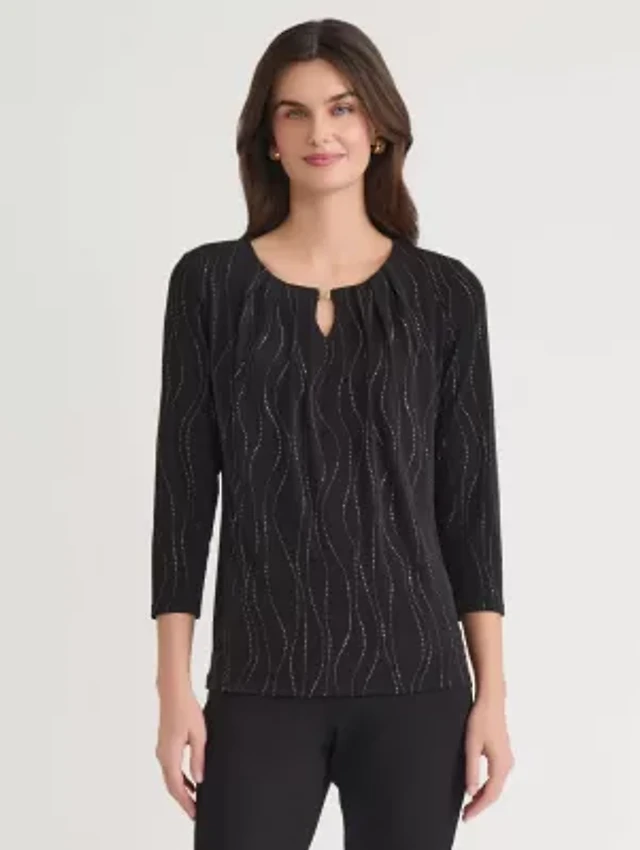 Petite Three-Quarter Sleeve Pleat Knit Blouse
